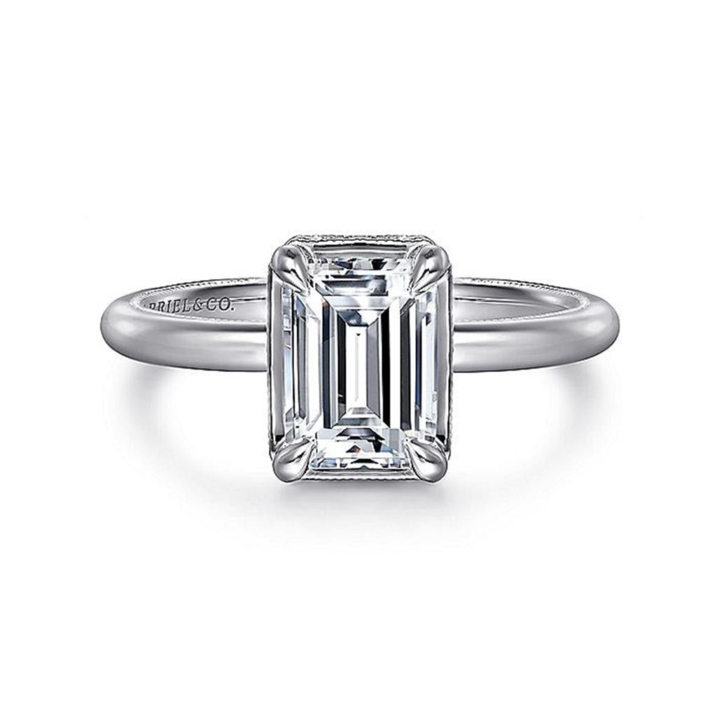 14K White Gold 'Catallina' Halo Emerald Cut Diamond Engagement Ring