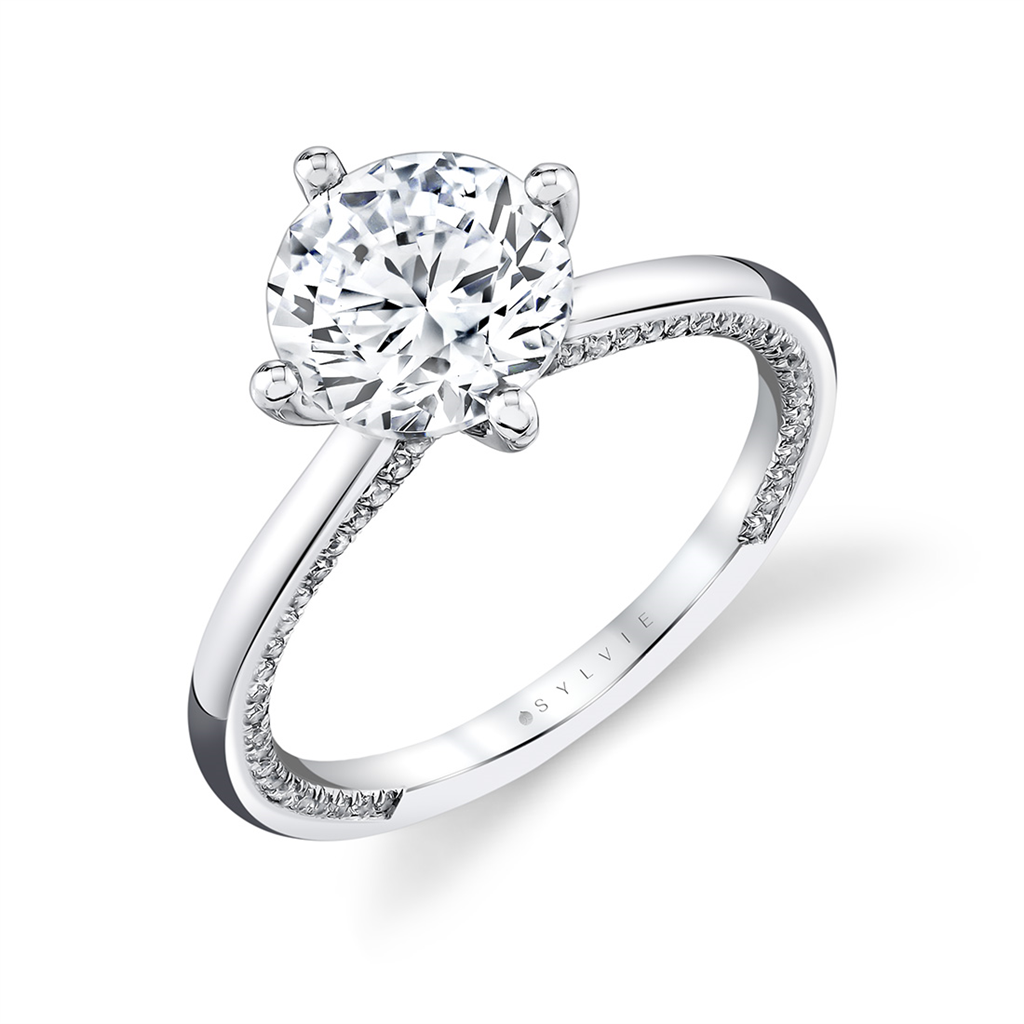 14K White Gold 'Kate' Compass Set Round Diamond Engagement Ring