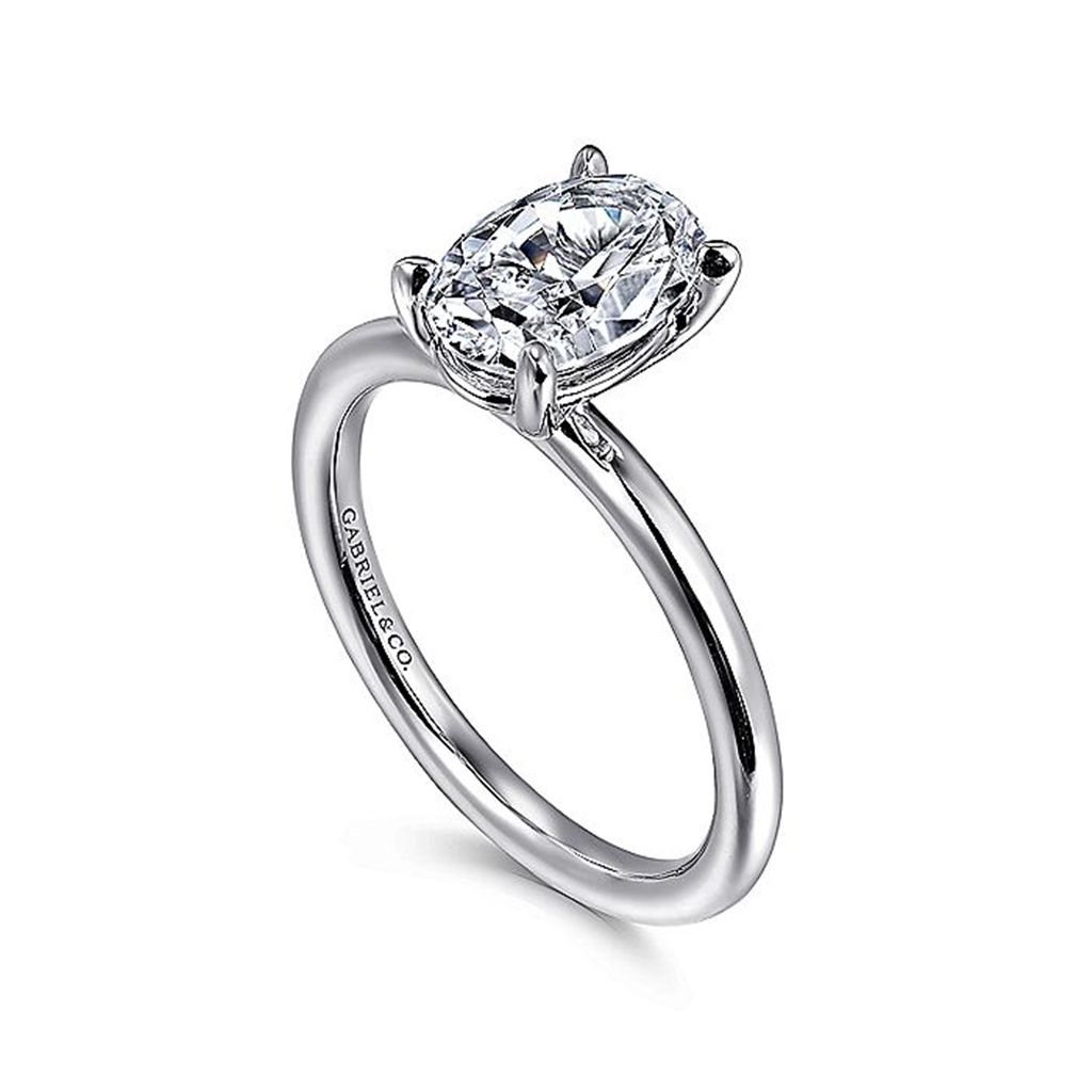 14K White Gold ‘Lark’ Oval Solitaire Engagement Ring