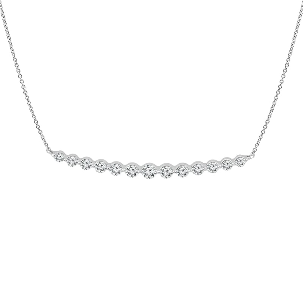 14K White Gold Natural Diamonds Curved Bar Necklace