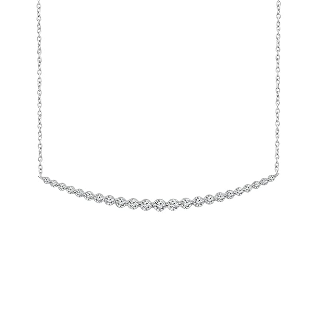 14K White Gold Natural Diamonds Curved Bar Necklace