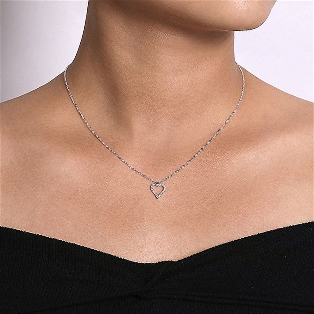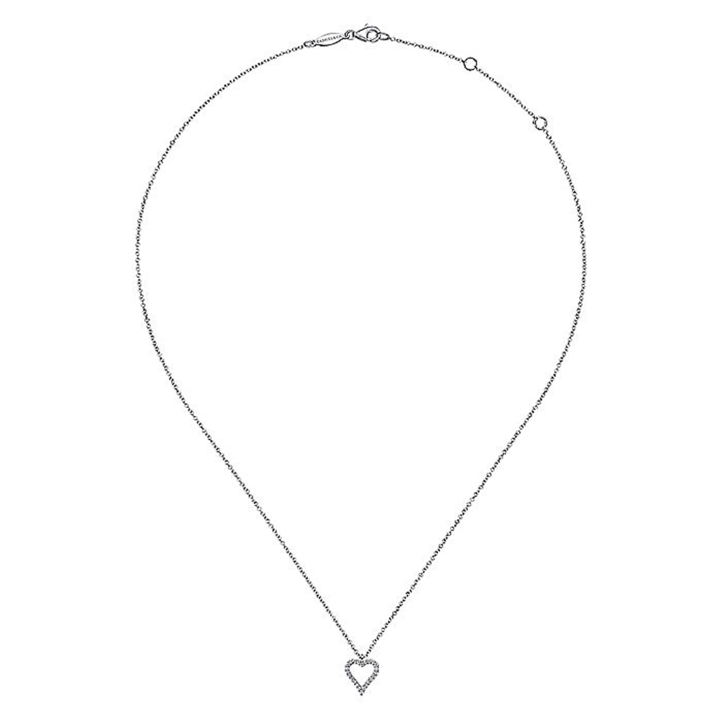 14K White Gold Pavé Diamond Open Heart Necklace