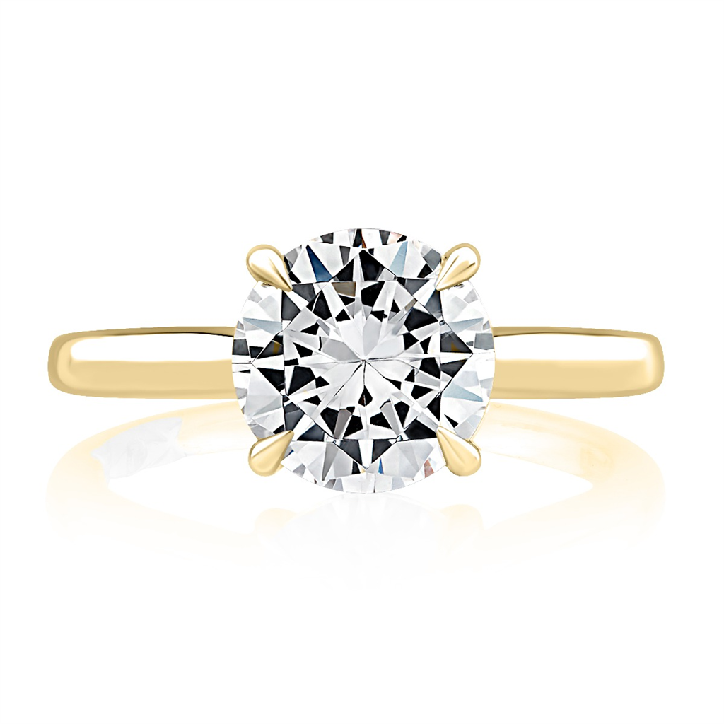 14K Yellow And White Gold Solitaire Diamond Engagement Ring With Peek-A-Boo Diamonds