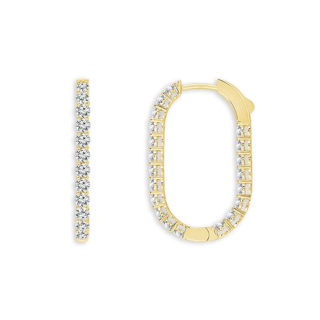 14K Yellow Gold 25Mm Oval Inside Out Natural Diamonds Hoop Earrings