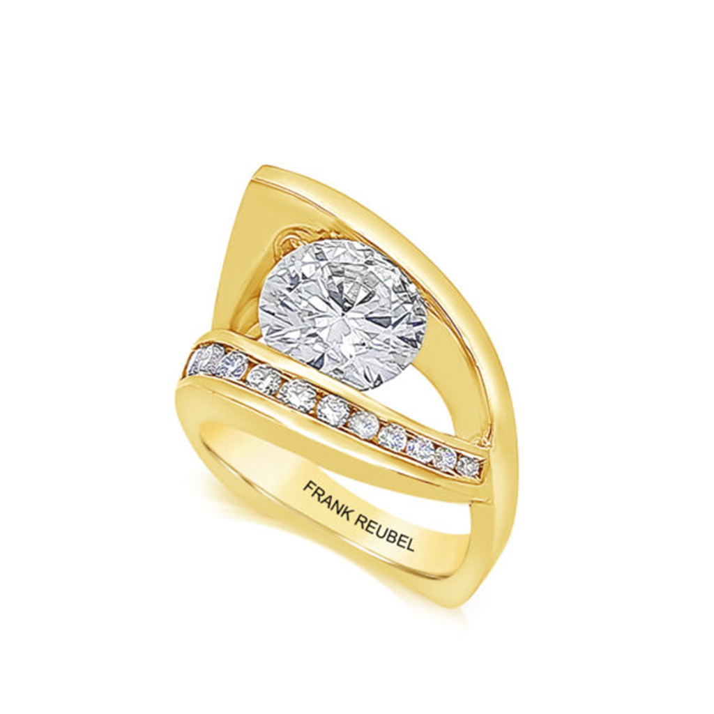 14K Yellow Gold Contemporary Round Natural Diamonds Engagement Ring