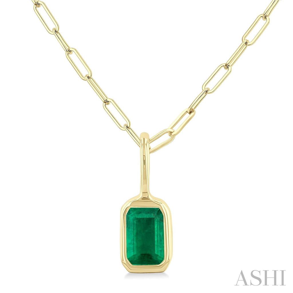 14K Yellow Gold Emerald Solitaire Pendant