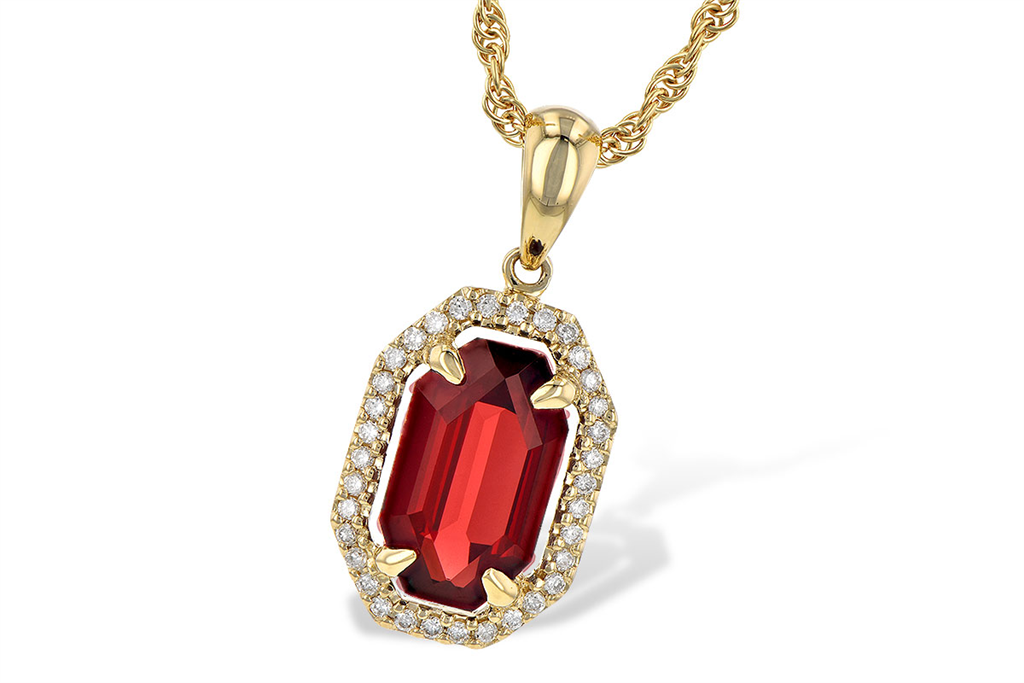 • Stones: (1) Emerald Cut Garnet (34) Round Diamonds