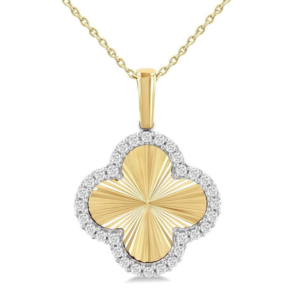 14K Yellow Gold Natural Diamonds Fluted Clover Pendant