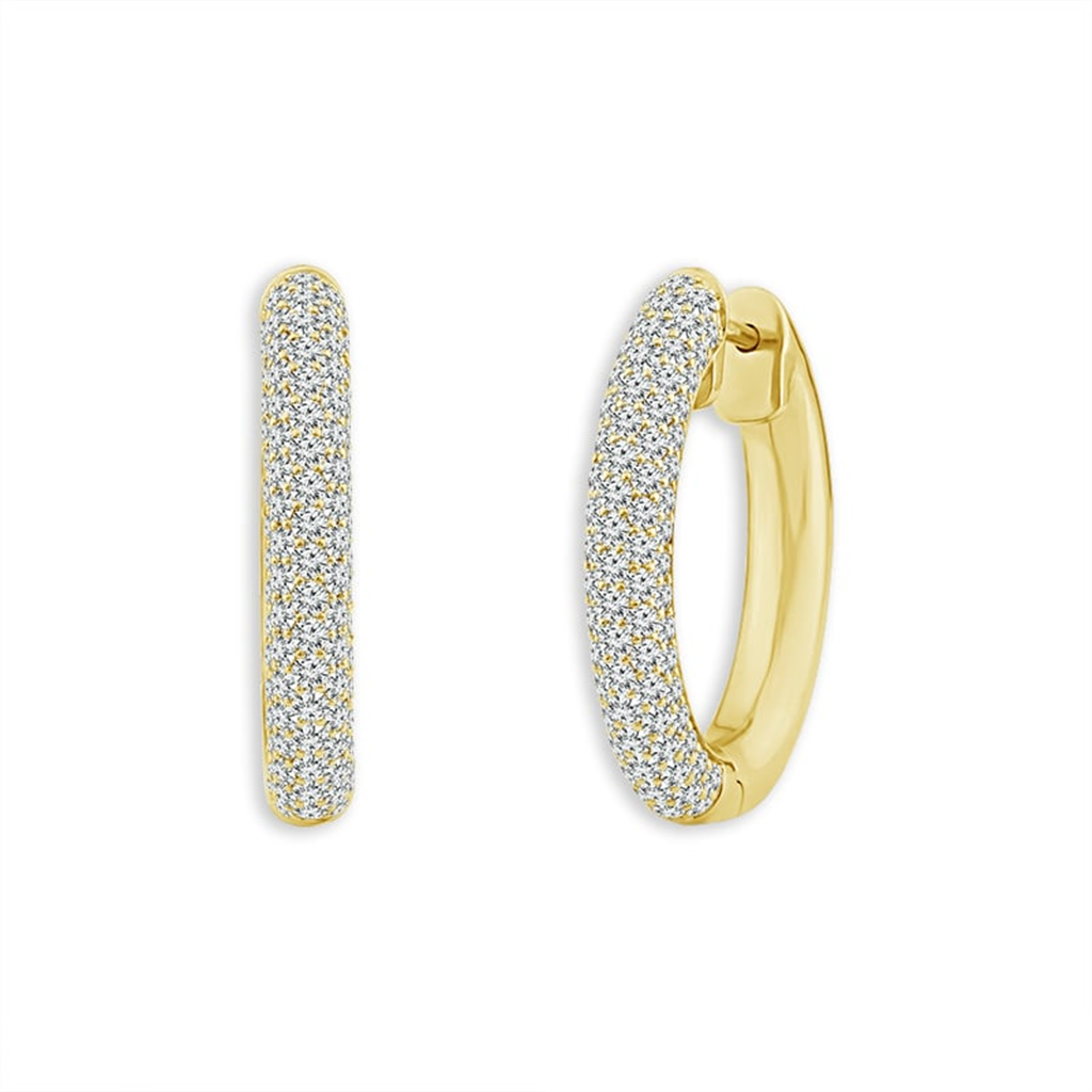 14K Yellow Gold Oval Contemporary Natural Diamonds Hoop Earrings