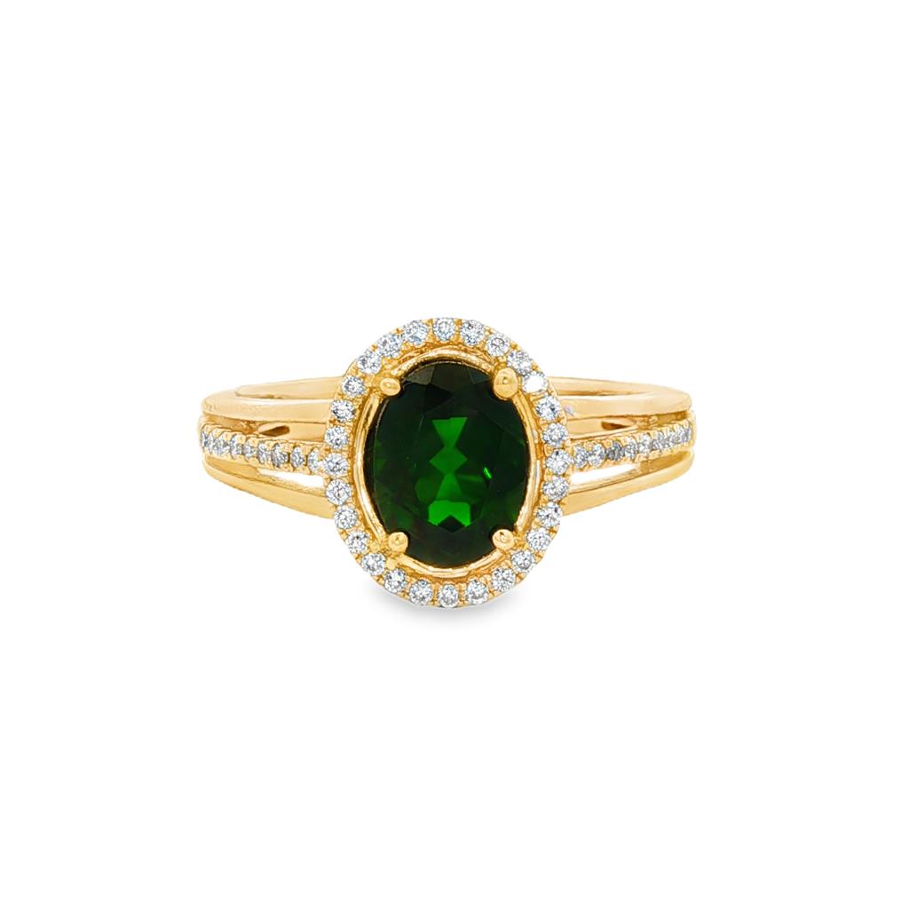 14K Yellow Gold Oval Russalite And Diamond Halo Ring
