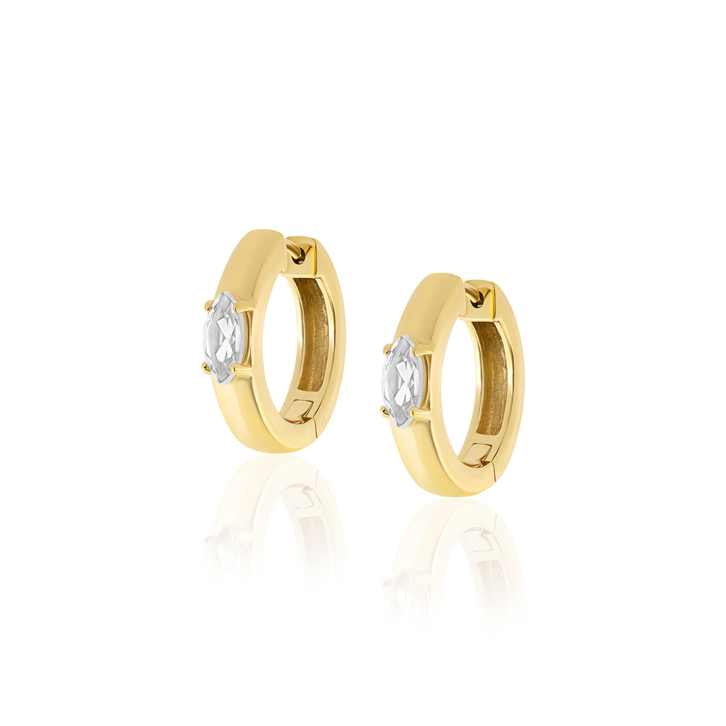 14K Yellow Gold Overlay Huggie Earrings With White Topaz