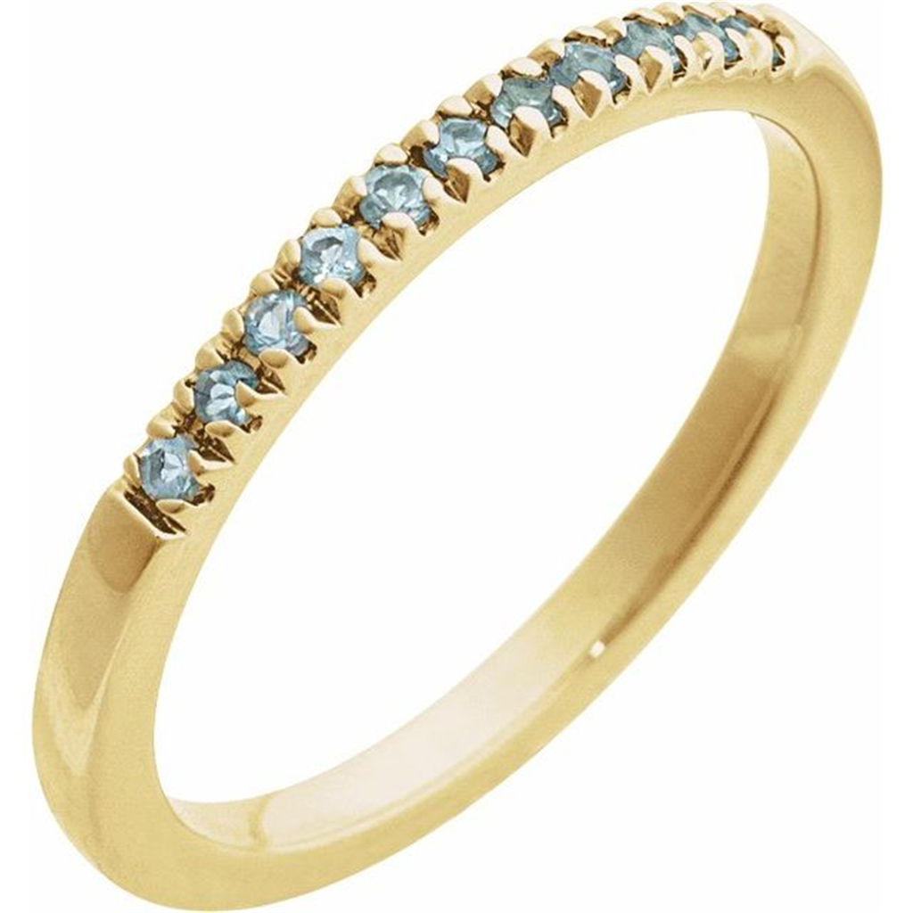 14K Yellow Gold March Birthstone Round Aquamarine Band Ring