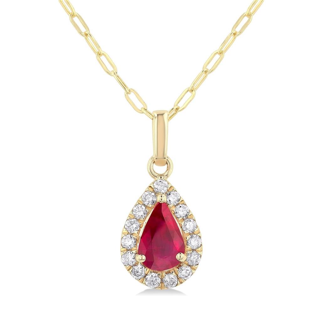 • Stones: (1) Pear Ruby (15) Round Diamonds