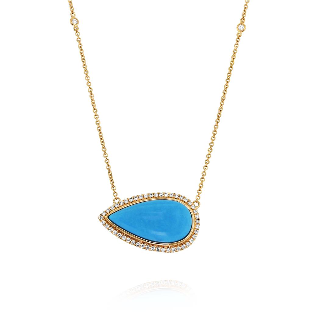 18K Rose Gold Turquoise And Diamond Halo Necklace