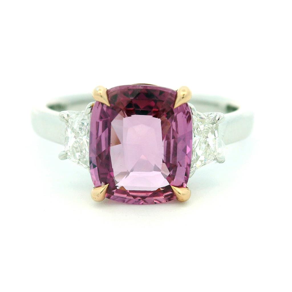 • Stones: (1) Cushion Pink Sapphire (2) Trapezoid Diamonds