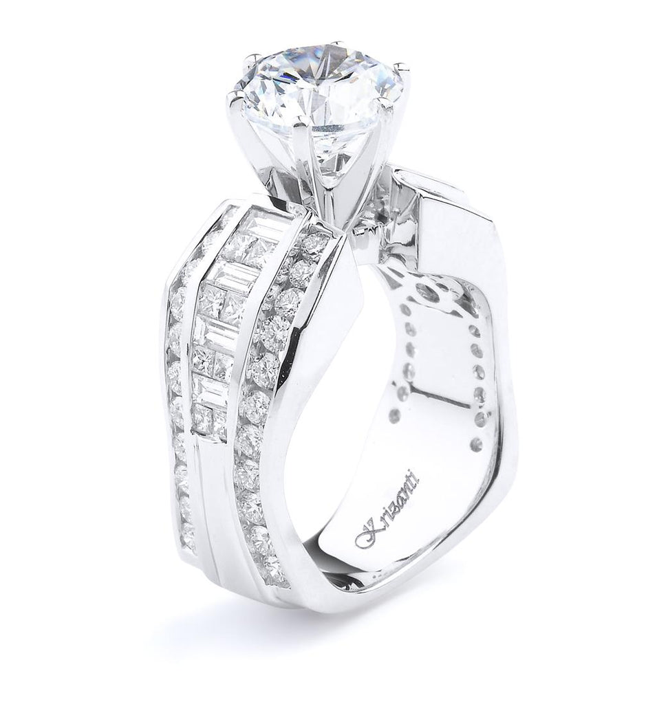 18K White Gold Wide Band Round Diamond Engagement Ring