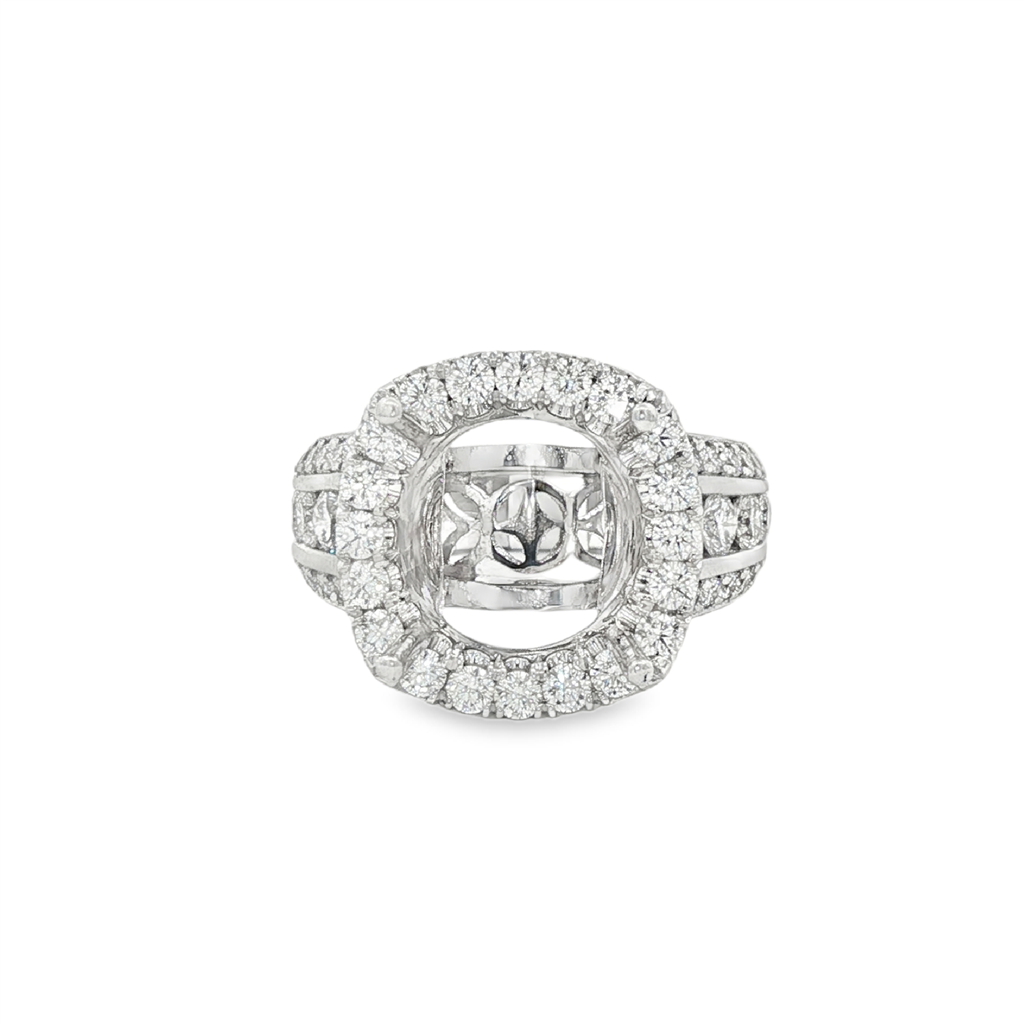 18K White Gold Halo Round Natural Diamonds Engagement Ring