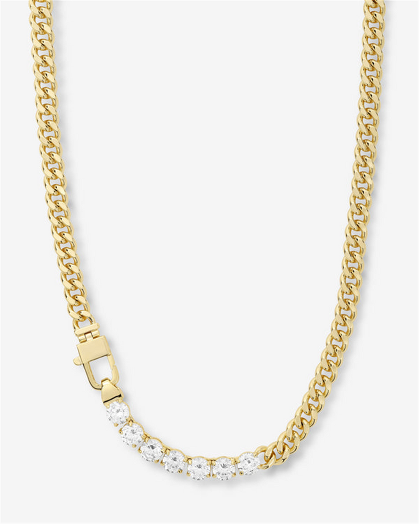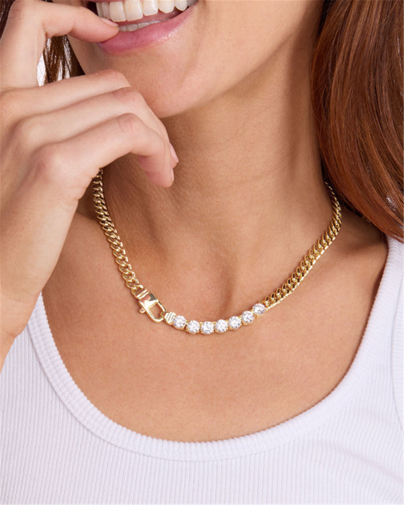18K Yellow Gold Overlay Cubic Zirconia Cuban Chain Necklace