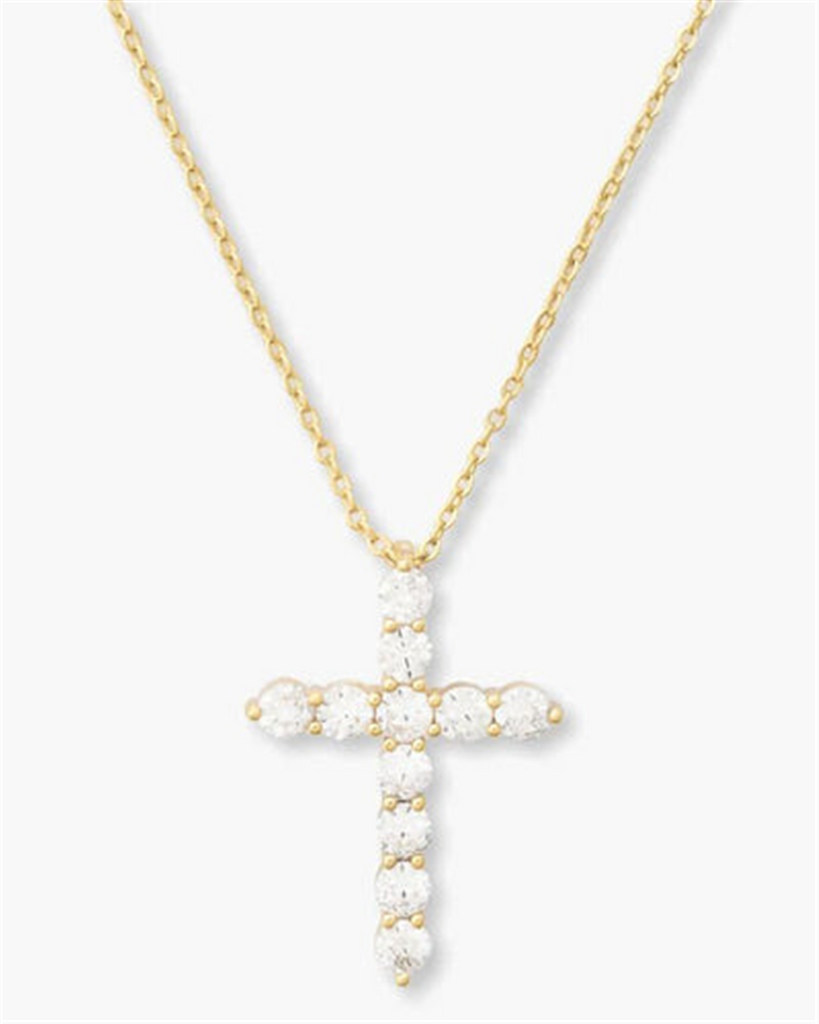 18K Yellow Gold Overlay 'Oh She Fancy' Cubic Zirconia Cross Pendant