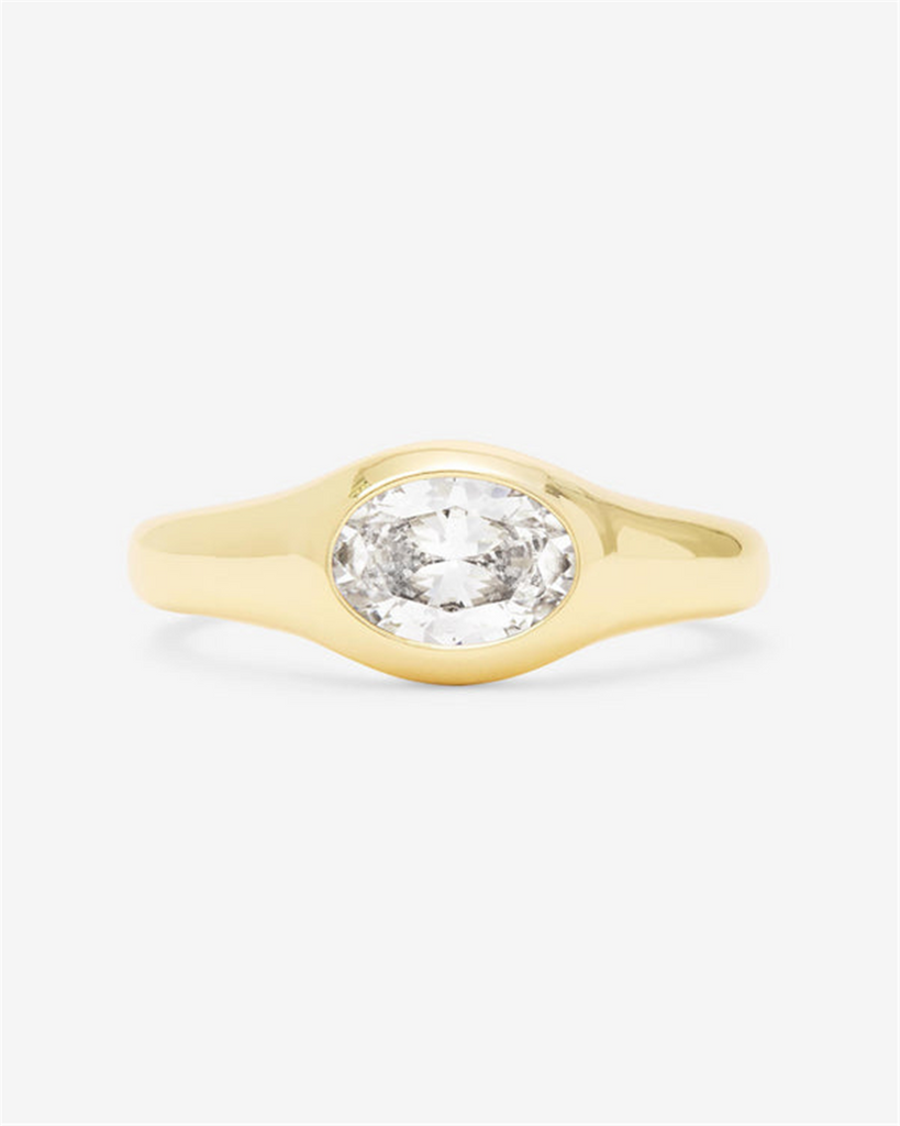 18K Yellow Gold Overlay Oval Cubic Zirconia Signet Ring