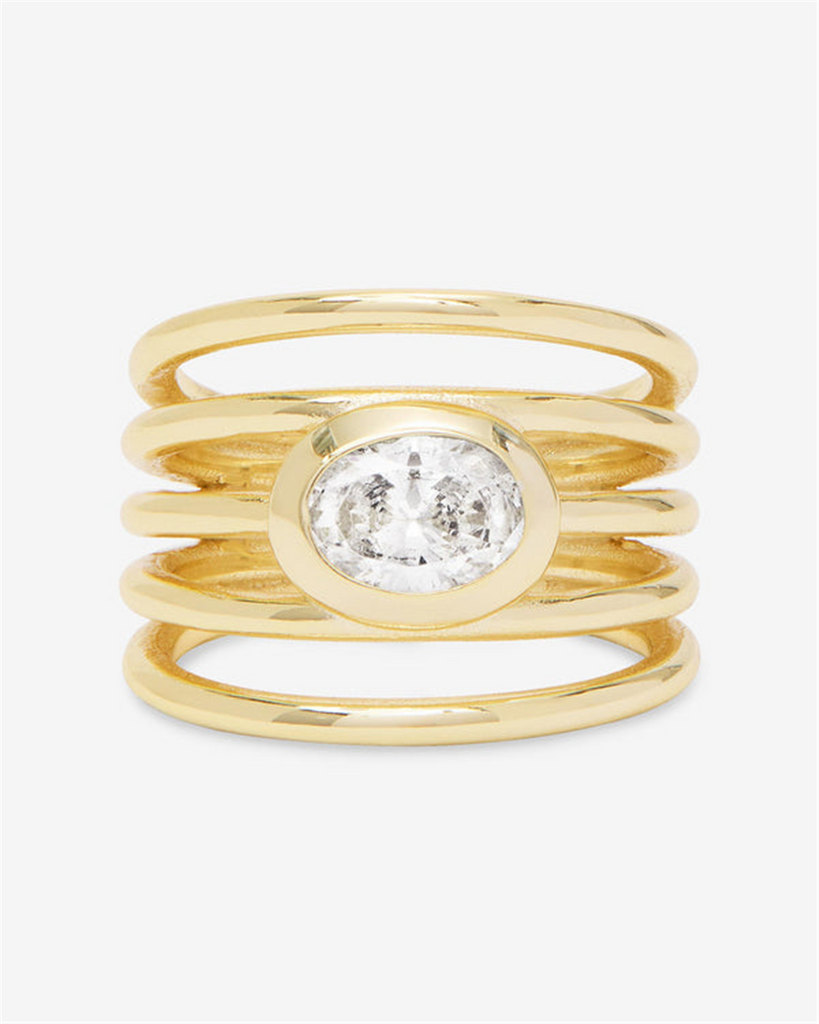 18K Yellow Gold Overlay Oval Cubic Zirconia Stacked Ring