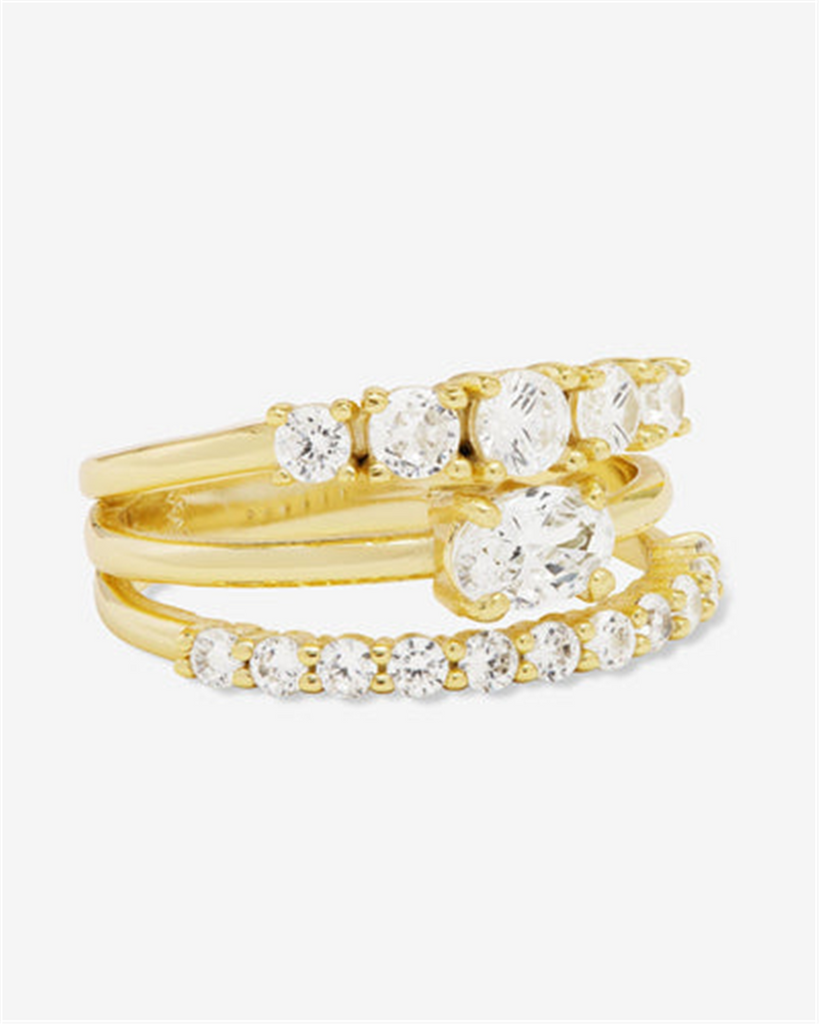 18K Yellow Gold Overlay 'She's So Stacked' Stacked Cubic Zirconia Ring