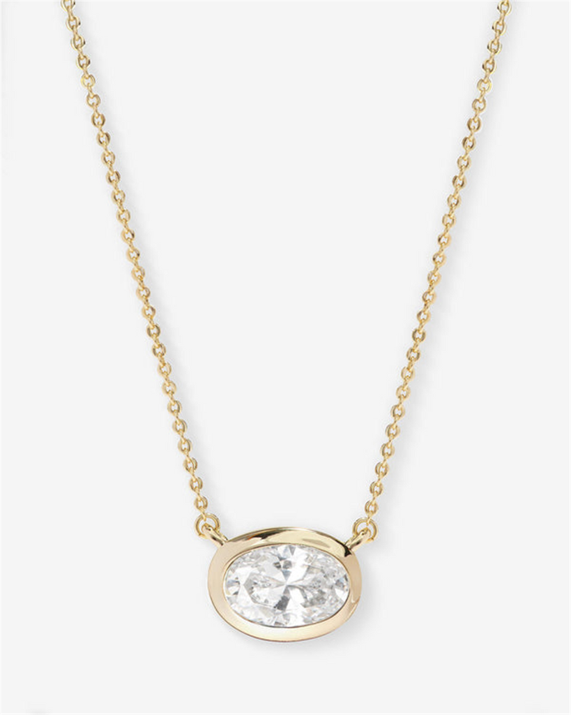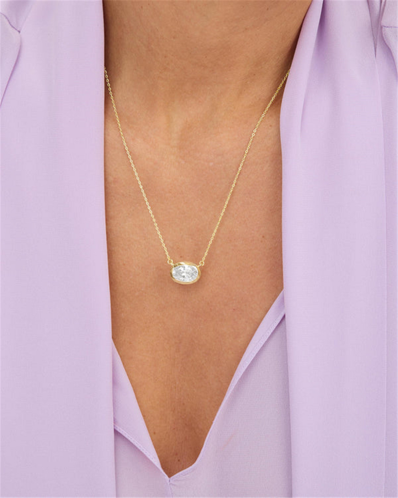 18K Yellow Gold Overlay Solitaire Oval Cubic Zirconia Necklace
