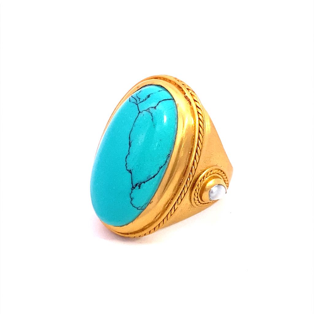 24K Yellow Gold Overlay 'Cannes' Statement Ring With Turquoise Blue Howlite