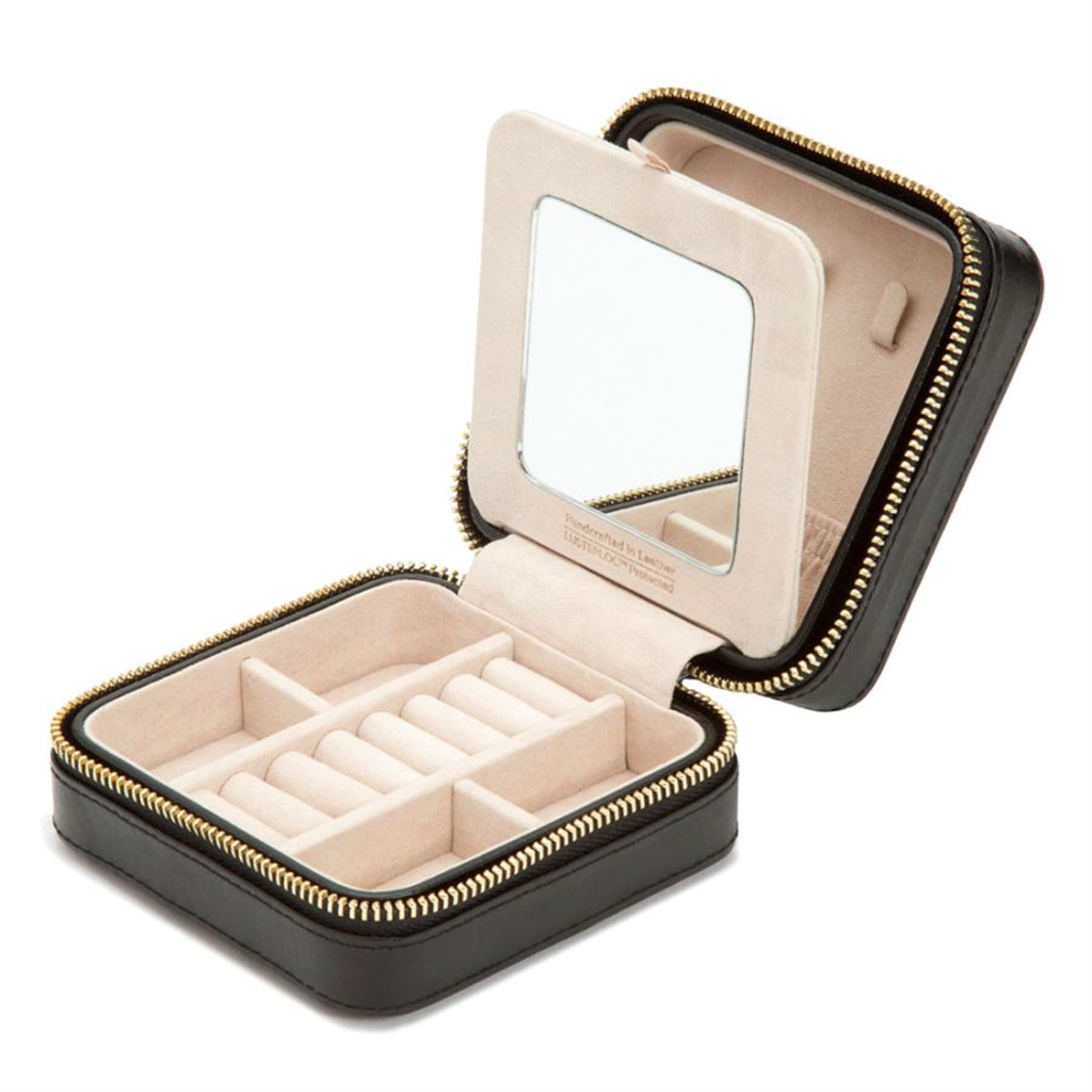 The embodiment of sophistication and style. Caroline, a timeless classic with elegant soft lines of the 50’s, supple diamond quilted leather accented with gold hardware. This refined zip travel case is the perfect home for your precious jewellery and heirlooms. Traveling with Caroline makes safekeeping your jewellery whilst on the go a snap.