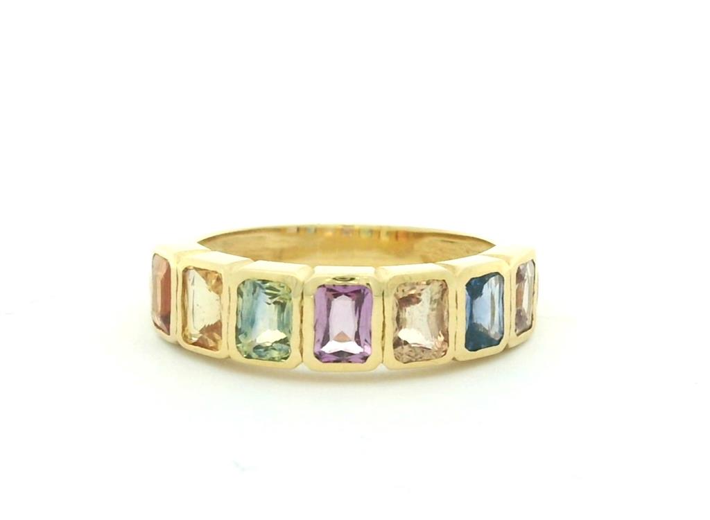 14K Yellow Gold Stackable Ring With 7=1.65Ctw Radiant Multi-Colored Sapphires Size 6