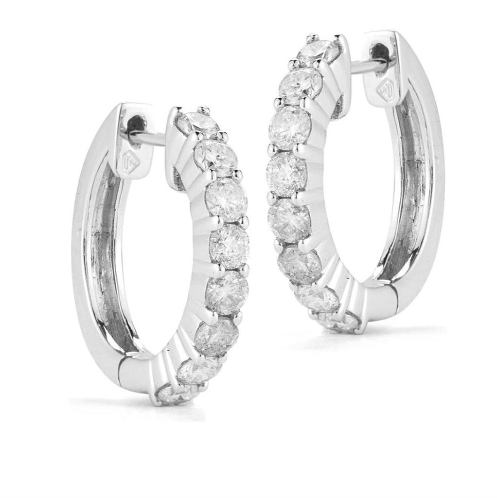 14K White Gold 16Mm Round Huggie Natural Diamonds Hoop Earrings