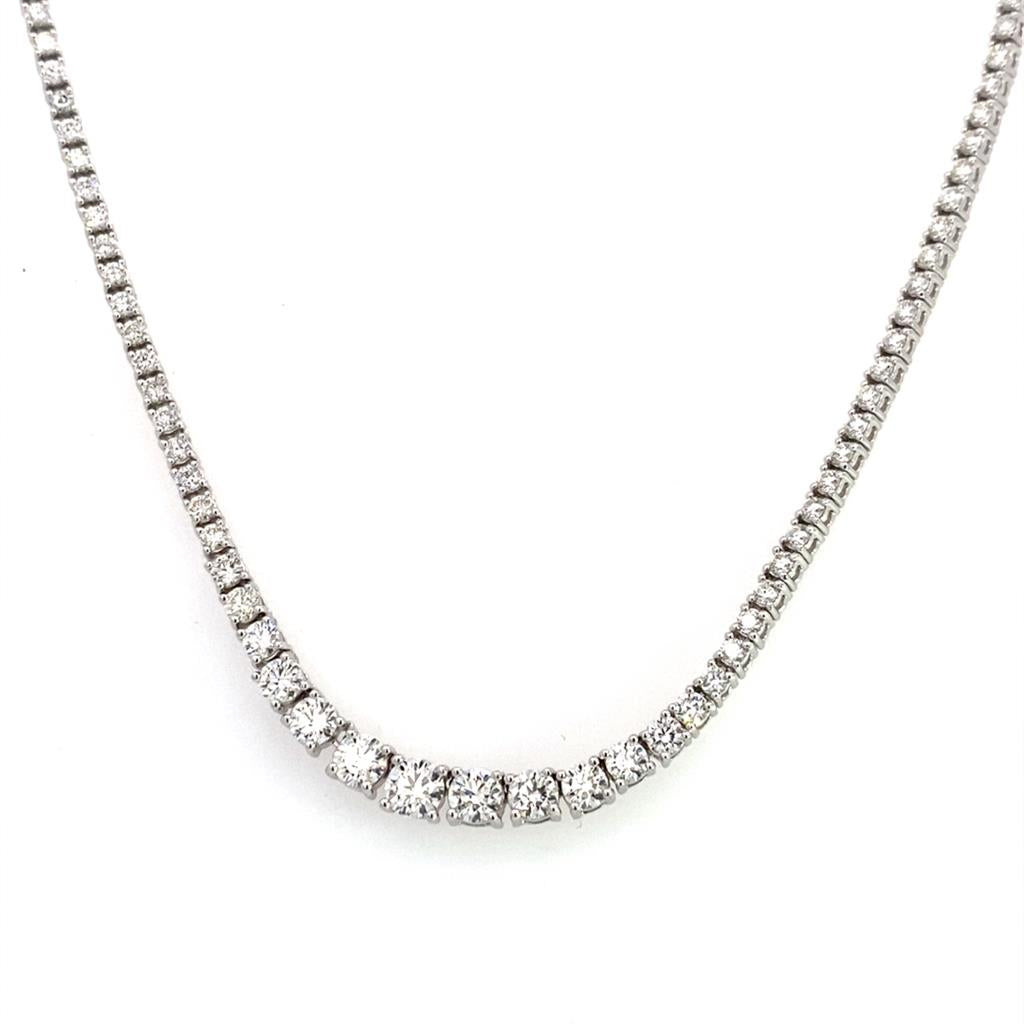 14K White Gold Tennis Diamond Necklace With 146=10.94Ctw Round Diamonds With A Length Of 17 Inches