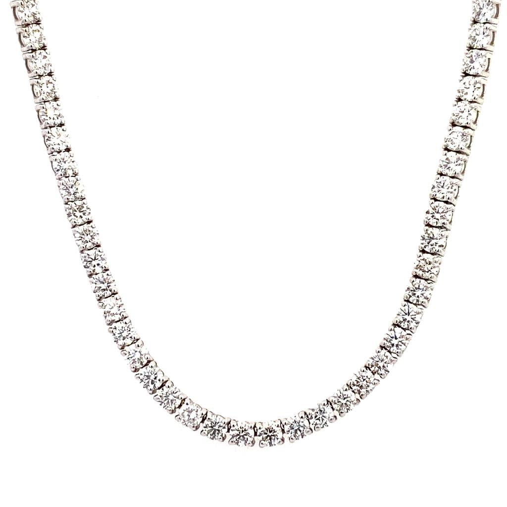 14K White Gold Tennis Diamond Necklace With 106=19.70Ctw Round Diamonds With A Length Of 16 Inches