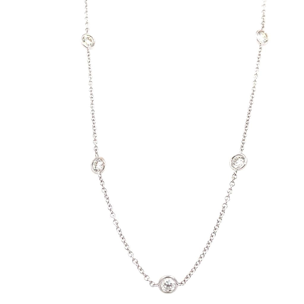 18K White Gold Station Diamond Necklace With 7=1.36Ctw Round Diamonds With A Length Of 17 Inches