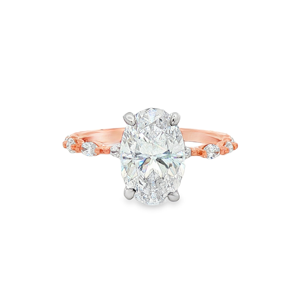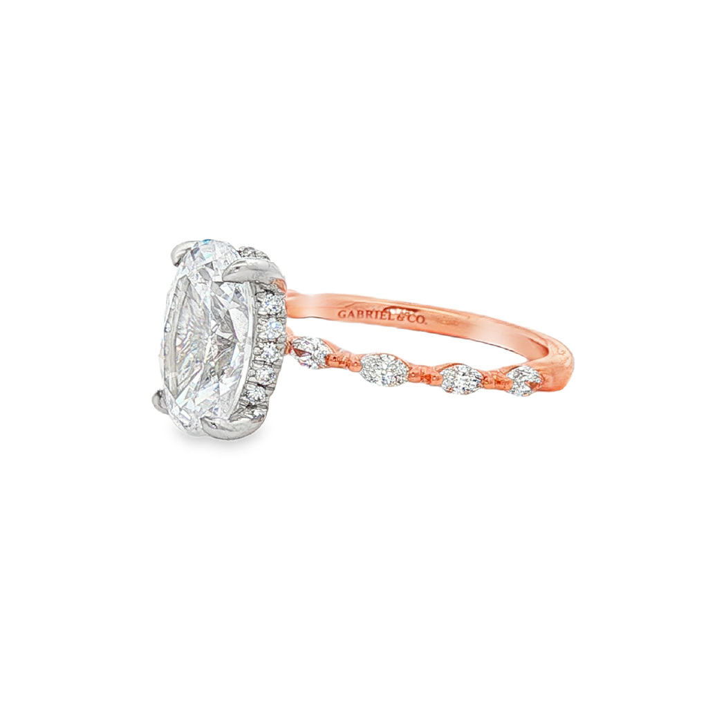14K Rose And White Gold 'Adeena' Hidden Halo Oval Engagement Ring