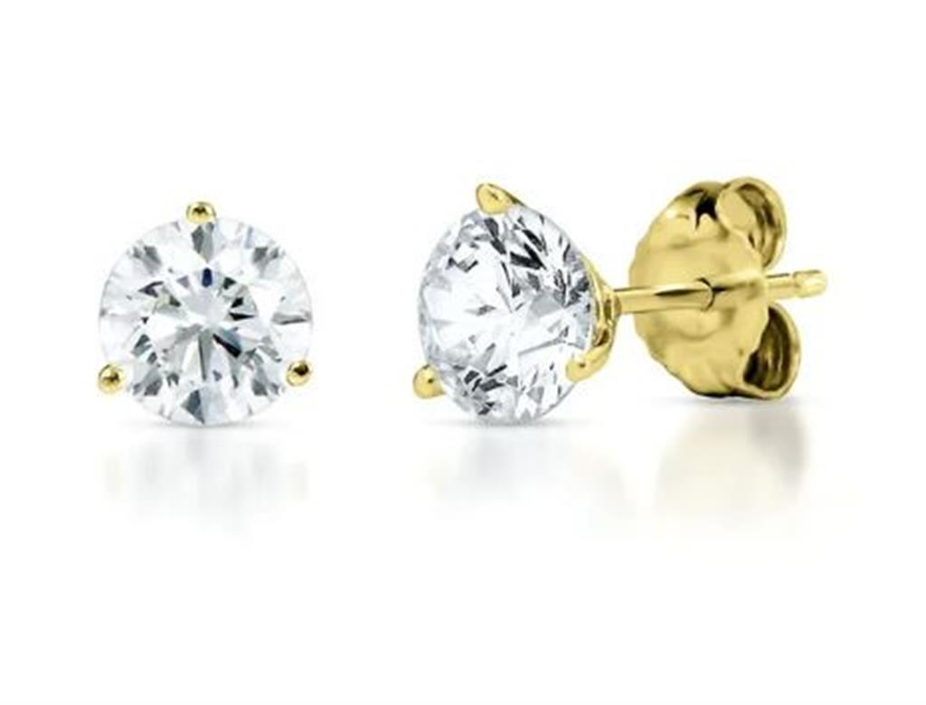 14K Yellow Gold Diamond Stud Earrings With 2=0.64Ctw Round Diamonds G/H I2