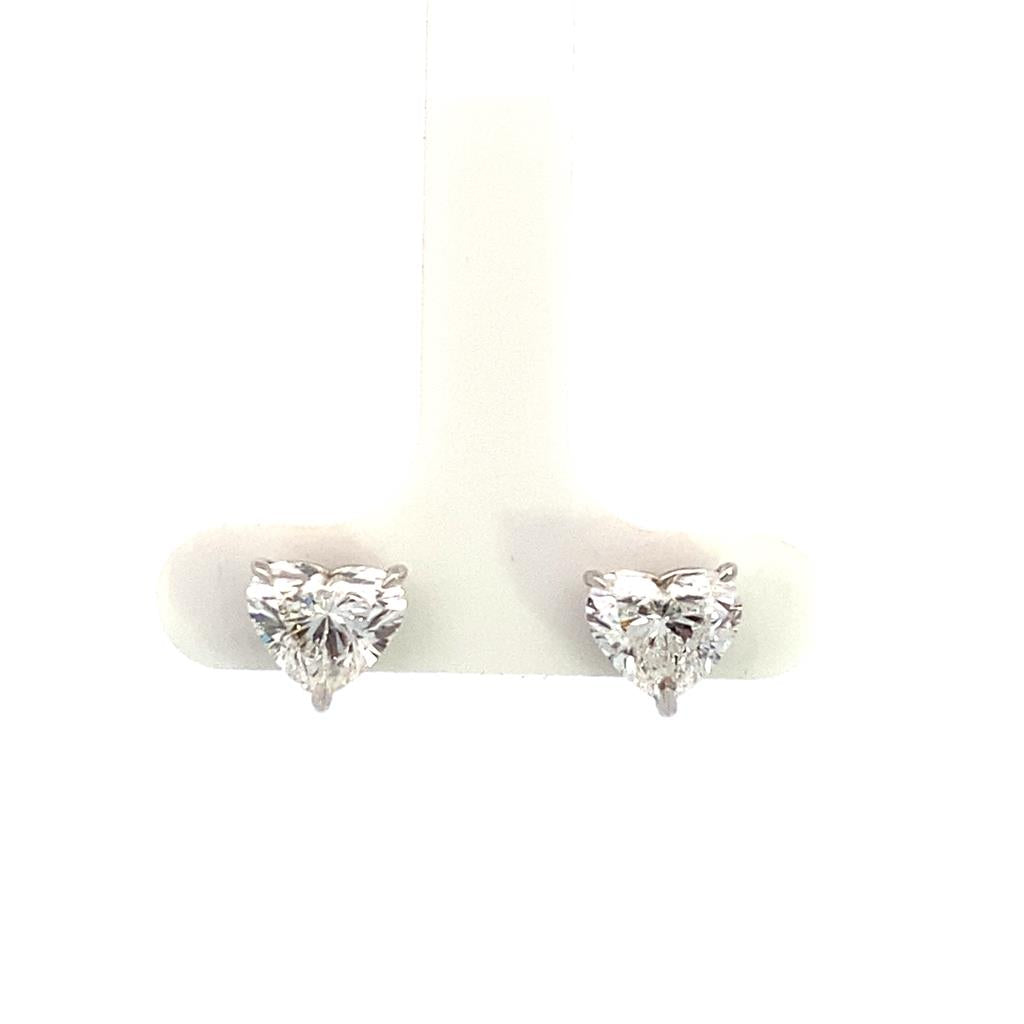 18K White Gold Diamond Stud Earrings With 1=1.51Ctw E SI2 Heart Diamond And 1=1.51Ctw E SI2 Heart Diamond