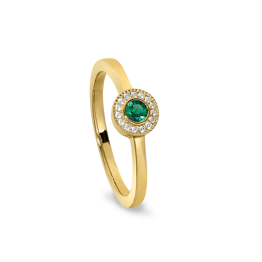 Gold Vermeil May Birthstone Round Simulated Emerald Halo Ring