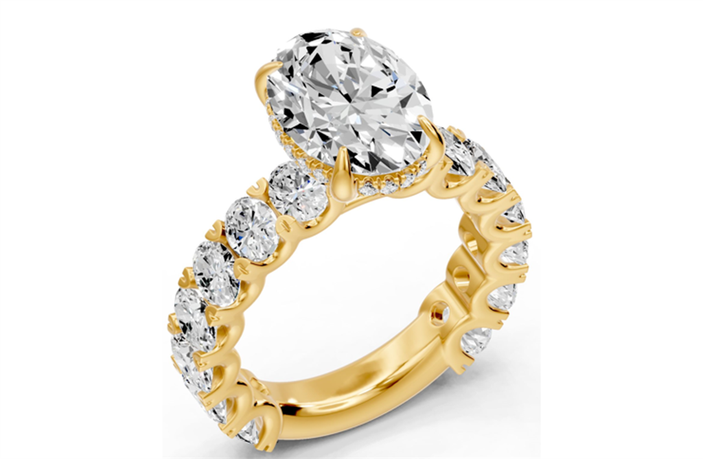 Lab Grown Diamond 14K Yellow Gold Hidden Halo Diamond Ring With (1) Oval Lab Grown Diamond 3.07CT F VS1 And 34 =2.45CTW Oval And Round Lab Grown Diamonds Ring Size 7