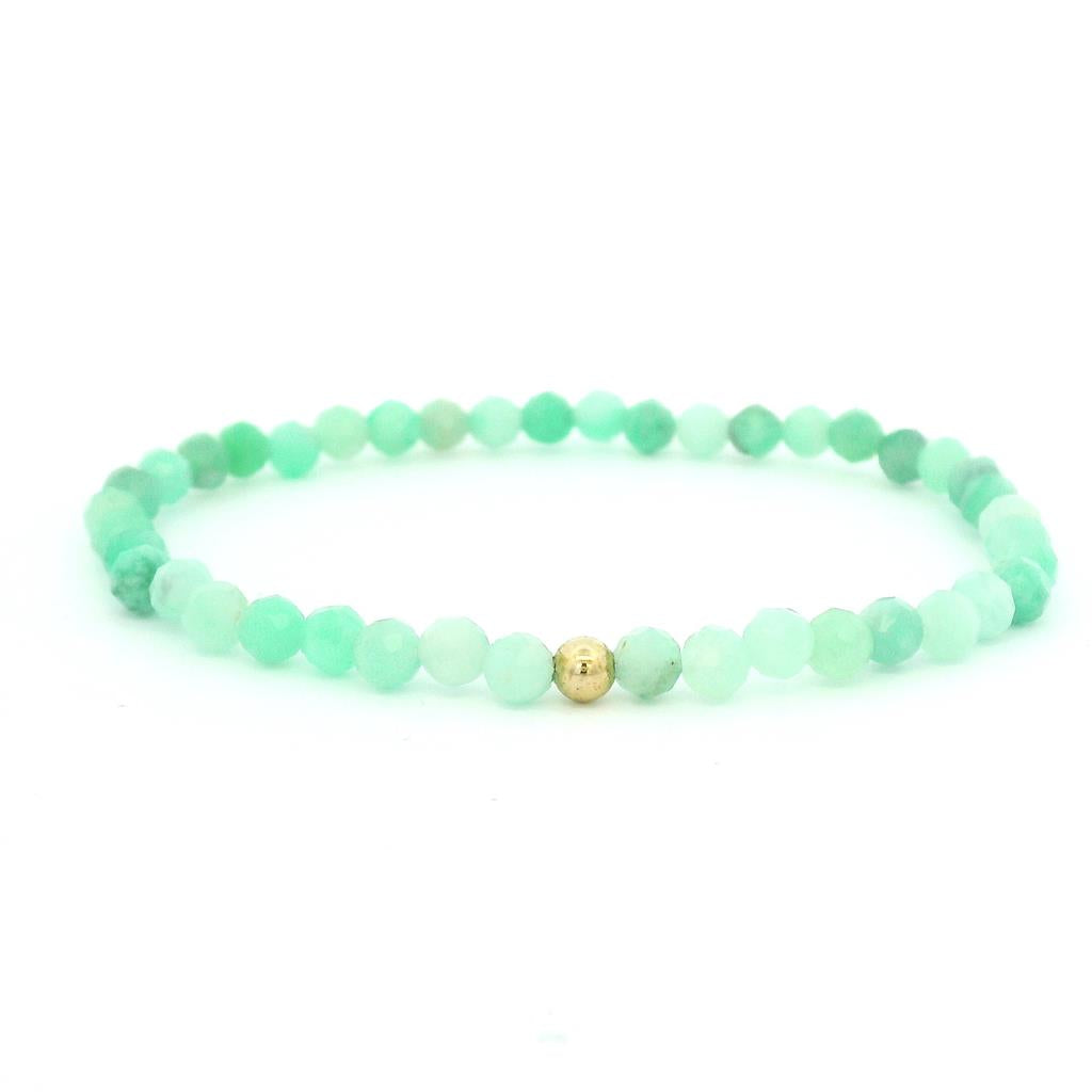 May Birthstone Bracelet: 4Mm Faceted Emerald Bracelet With Gold Filled Finishing Bead