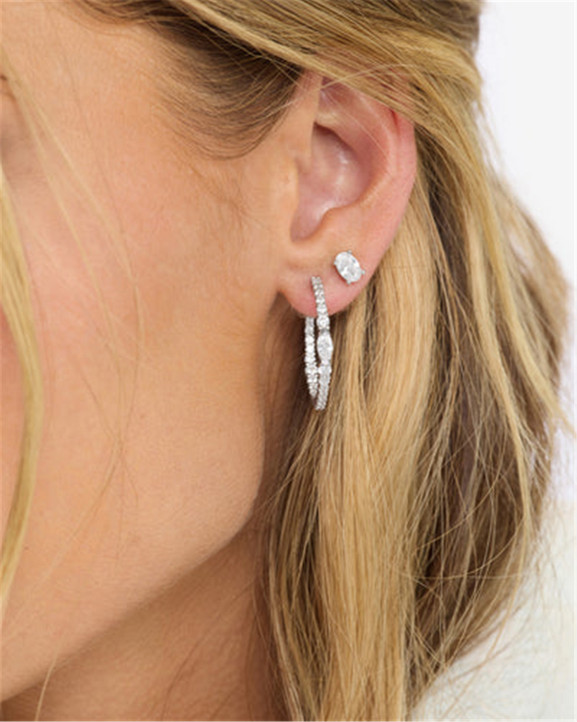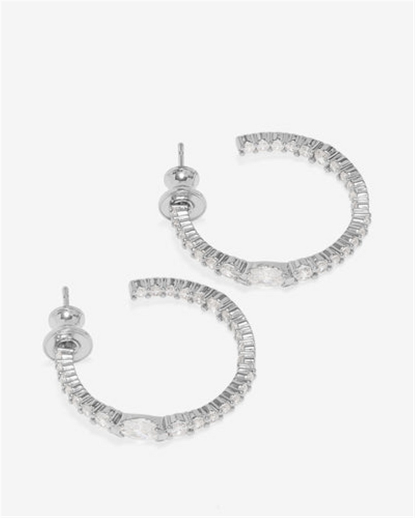 Silver Overlay 25Mm 'The Maven' Cubic Zirconia Medium Hoops