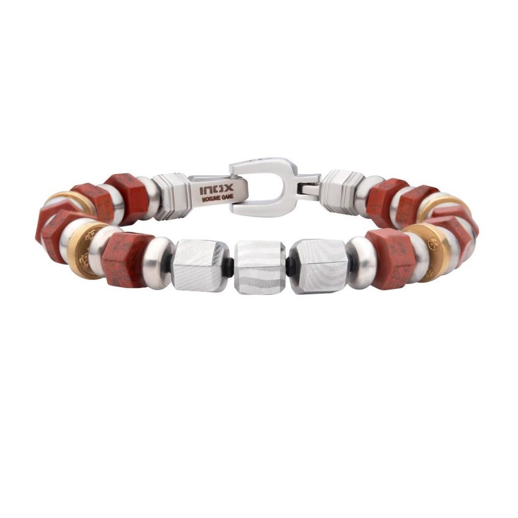 Stainless Steel 8mm Mokume Gane And Red Jasper Beads Bushido Virtue Bracelet