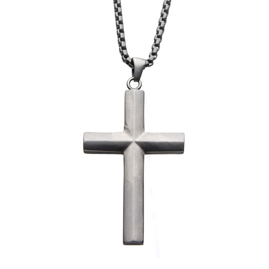 Stainless Steel Matte Finish Cross Pendant Necklace