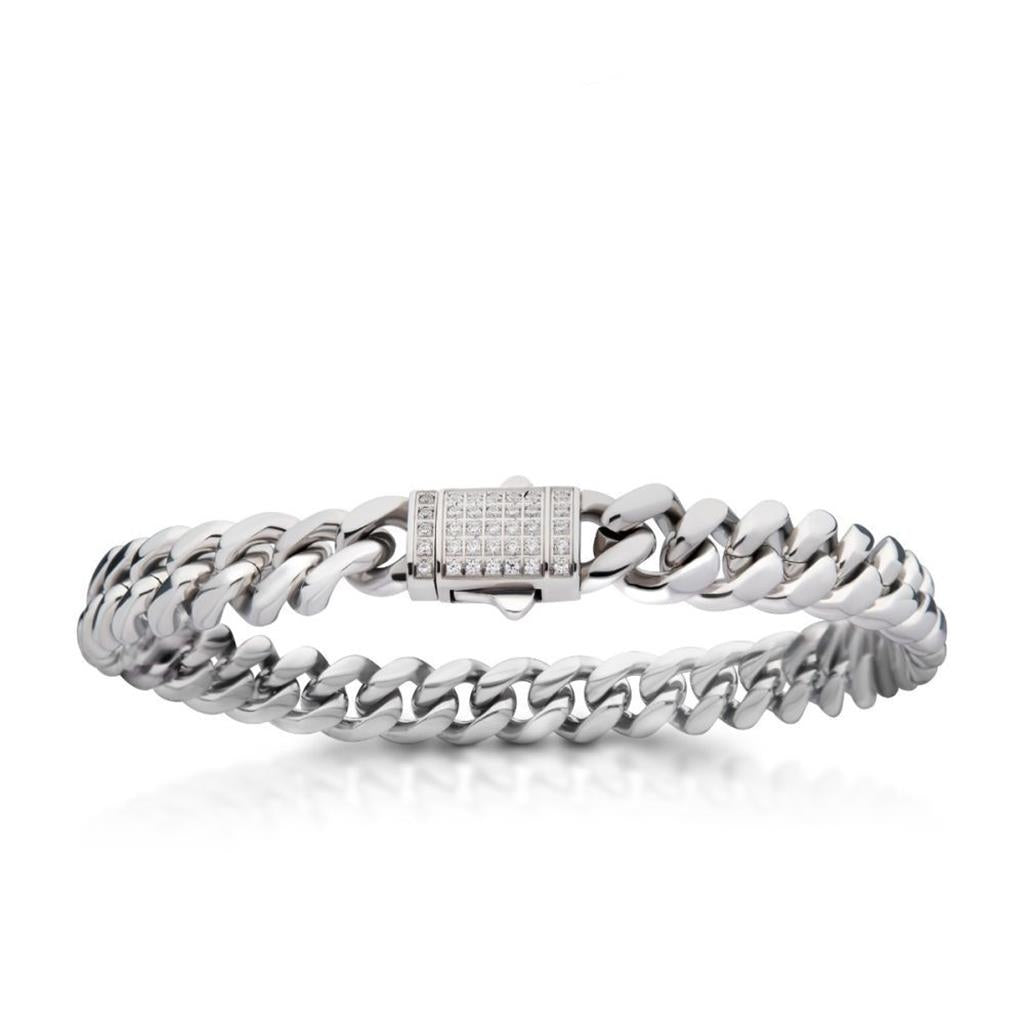 Stainless Steel Miami Cuban Chain Lab Grown Diamond Bracelet