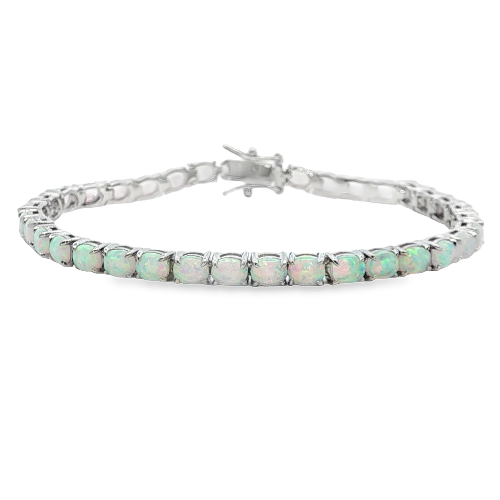 Sterling Silver Lab Grown Opals Tennis Bracelet