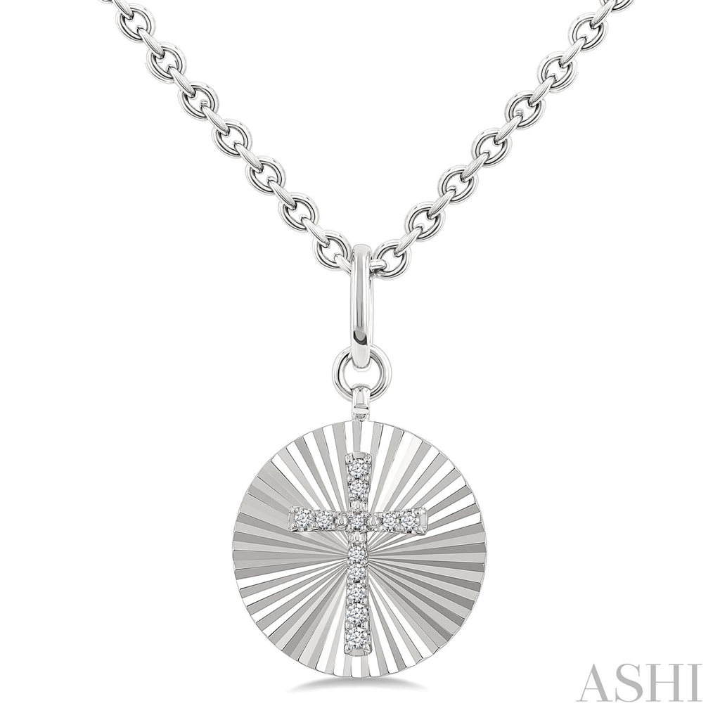 Sterling Silver Natural Diamonds Fluted Cross Pendant