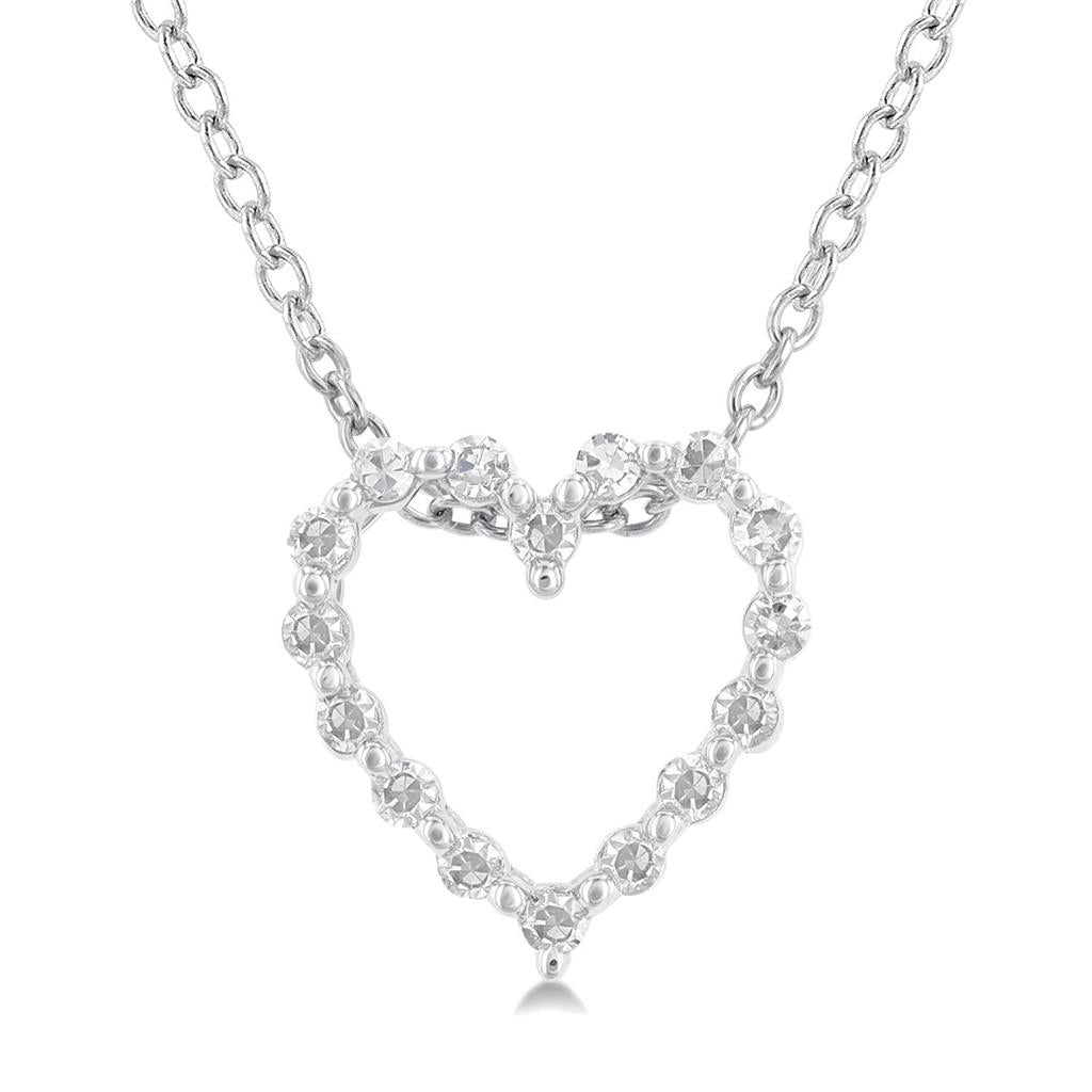 Sterling Silver Petite Heart Diamond Pendant Necklace